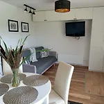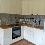 Siedlisko Dwa Zurawie - Uroczy Domek Nad Stawem, Z Kominkiem, Obok Konie villa houses an equipped kitchen with a fridge, an oven, and kitchenware. An array of activities such as hiking can be enjoyed on-site.